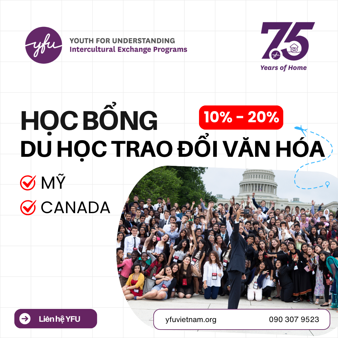 Nhân dịp kỷ niệm 75 năm thành lập, Tổ chức giáo dục phi lợi nhuận Youth For Understanding (YFU) trao tặng các suất học bổng đặc biệt trị giá 10% - 20% dành cho 05 ứng viên xuất sắc, cụ thể: